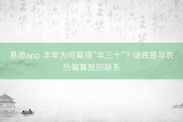 易游app 本年为何莫得“年三十”? 谜底是与农历编算规则联系