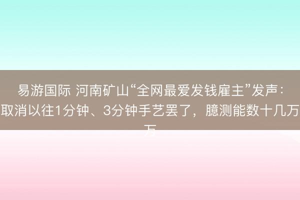 易游国际 河南矿山“全网最爱发钱雇主”发声:取消以往1分钟、3分钟手艺罢了,臆测能数十几万