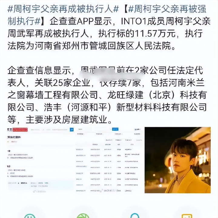 雷同的,还过剩景天家的涉毒KTV事件、周震南父母拖欠数亿债务、周柯宇父亲被履行.......
