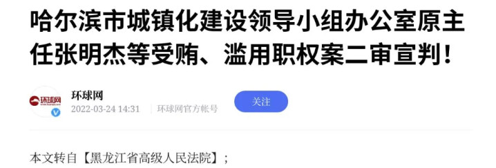 张明杰原为黑龙江省哈尔滨市发改委原副主任。