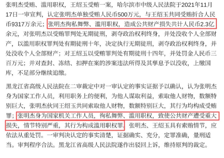 事实上,张明杰案的终审成果确乎抹除了退步罪名,但纳贿罪板上钉钉。