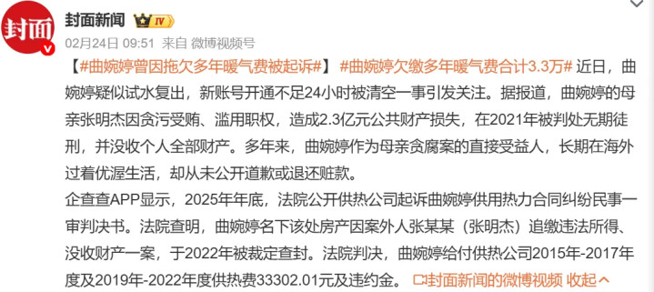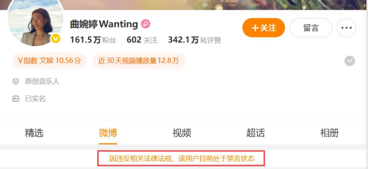 被整顿的「曲婉婷复出」账号是假的。