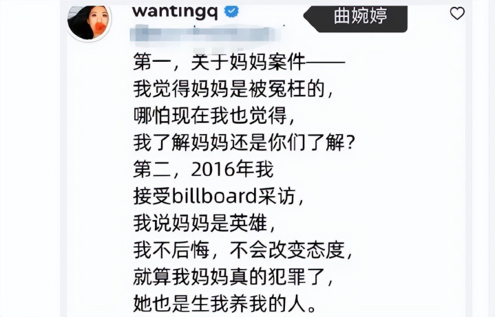 曲婉婷本东说念主曾经叫屈我方被连坐,受抨击多年苦不可言。