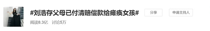 比如,刘浩存父母的跳舞学校出现学员受伤毕生瘫痪事件。