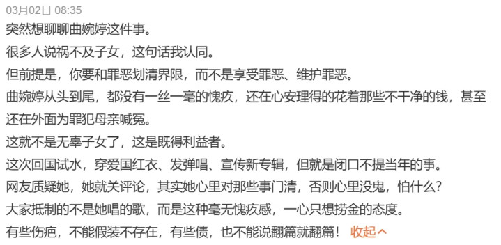 曲婉婷自认受害者的一系列作为,更惹反感。
