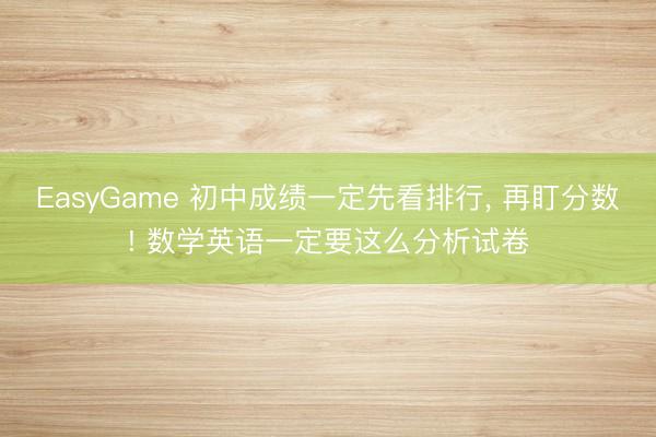 EasyGame 初中成绩一定先看排行, 再盯分数! 数学英语一定要这么分析试卷