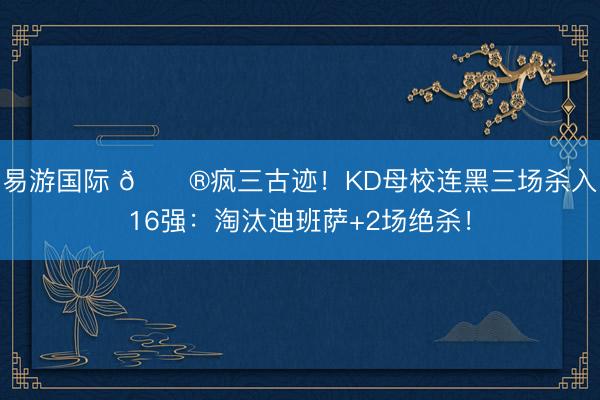 易游国际 😮疯三古迹!KD母校连黑三场杀入16强:淘汰迪班萨+2场绝杀!