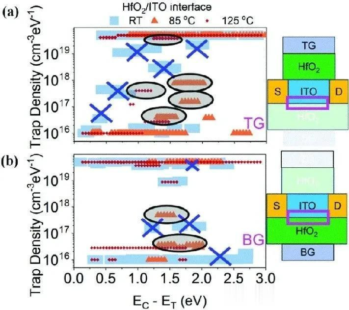 高温会退火撤废 HfO₂/ITO 界面隔壁的浅罗网,同期产生新的深罗网。