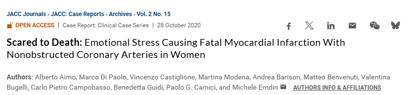 情谊应激可通过α受体介导激勉冠脉痉挛,即使无显着动脉粥样硬化也可能致命:
