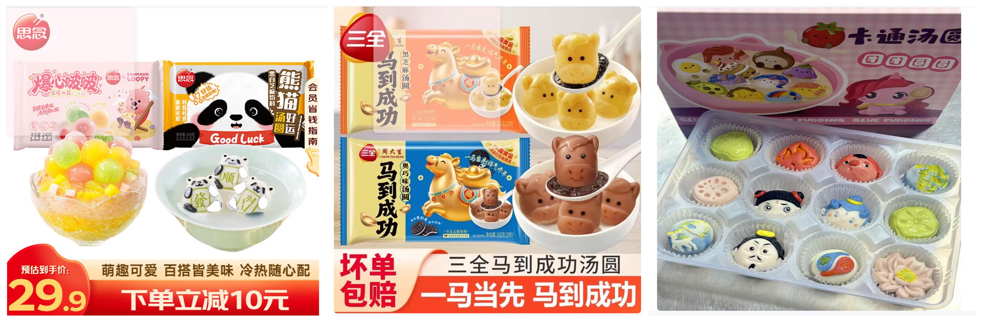 元宵节相近,电商平台上各色卡通汤圆五花八门。记者网站截图拼图
