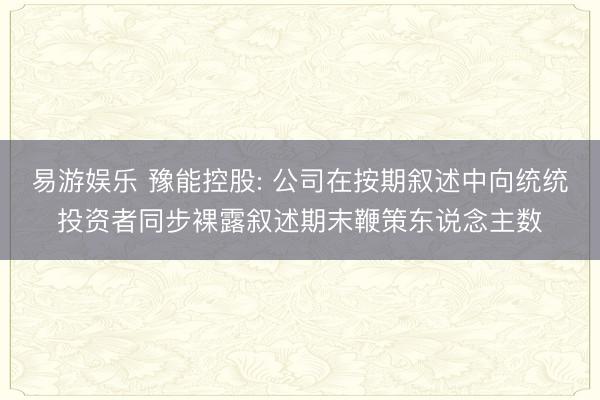 易游娱乐 豫能控股: 公司在按期叙述中向统统投资者同步裸露叙述期末鞭策东说念主数