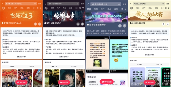 此外,春节手艺参与春节档电影的抖音投稿行径,还有契机赢取流量激勉、解锁万元开屏资源。