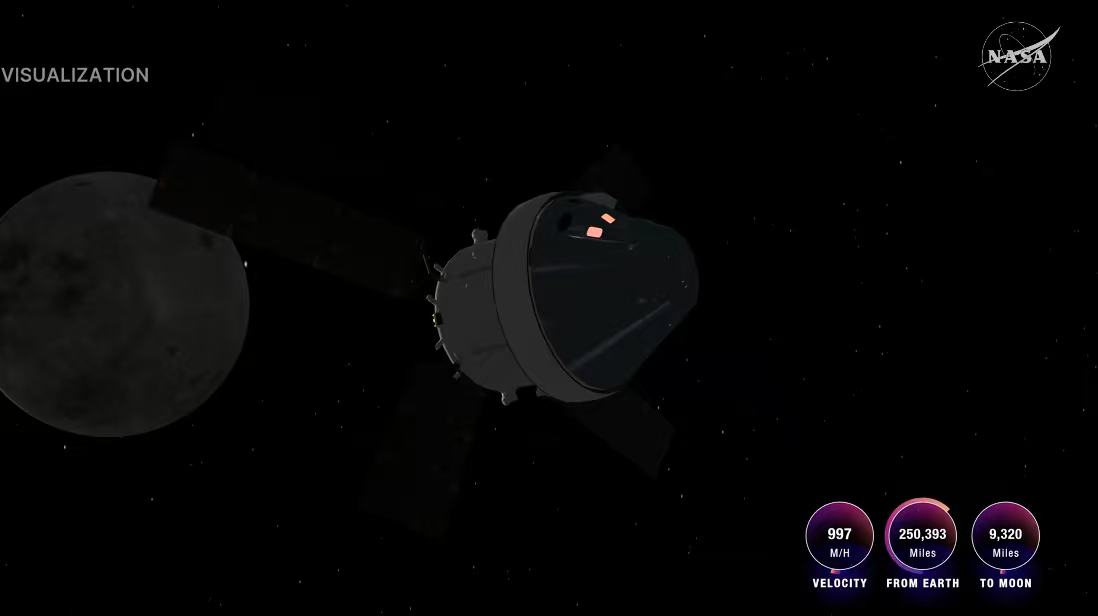 “阿尔忒弥斯2号”载东谈主绕月翱游任务直播画面(图源好意思国宇航局)