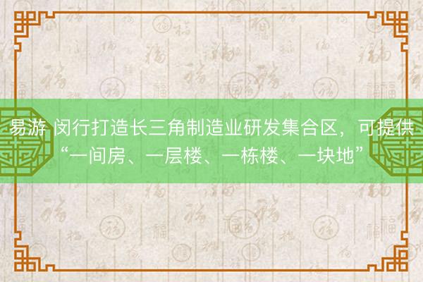 易游 闵行打造长三角制造业研发集合区,可提供“一间房、一层楼、一栋楼、一块地”