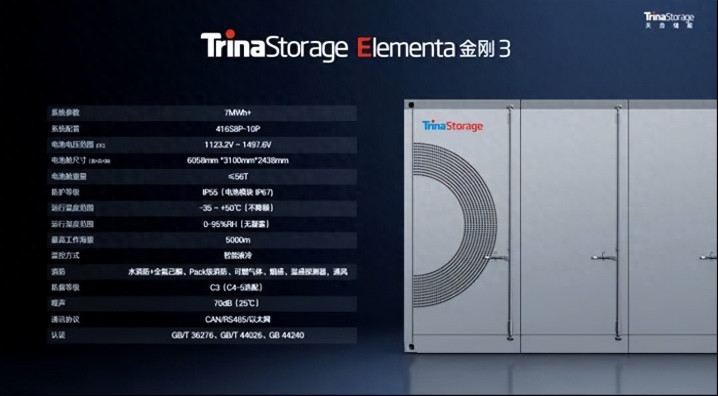 天合储能Elementa系列措置决策专为顶点环境遐想,具备高能量密度、长命命与高安全性等特征,其中Elementa金刚3搭载587Ah大容量储能专用电芯,单个电板舱的的容量由原本的5MWh栽种到7MWh。同期通过栽种能量密度、能效和全生命周期混沌量,比拟上一代家具,度电老本LCOE不错裁减12.5%。