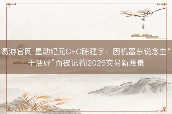 易游官网 星动纪元CEO陈建宇:因机器东说念主“干活好”而被记着|2026交易新愿景