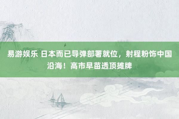 易游娱乐 日本而已导弹部署就位,射程粉饰中国沿海!高市早苗透顶摊牌